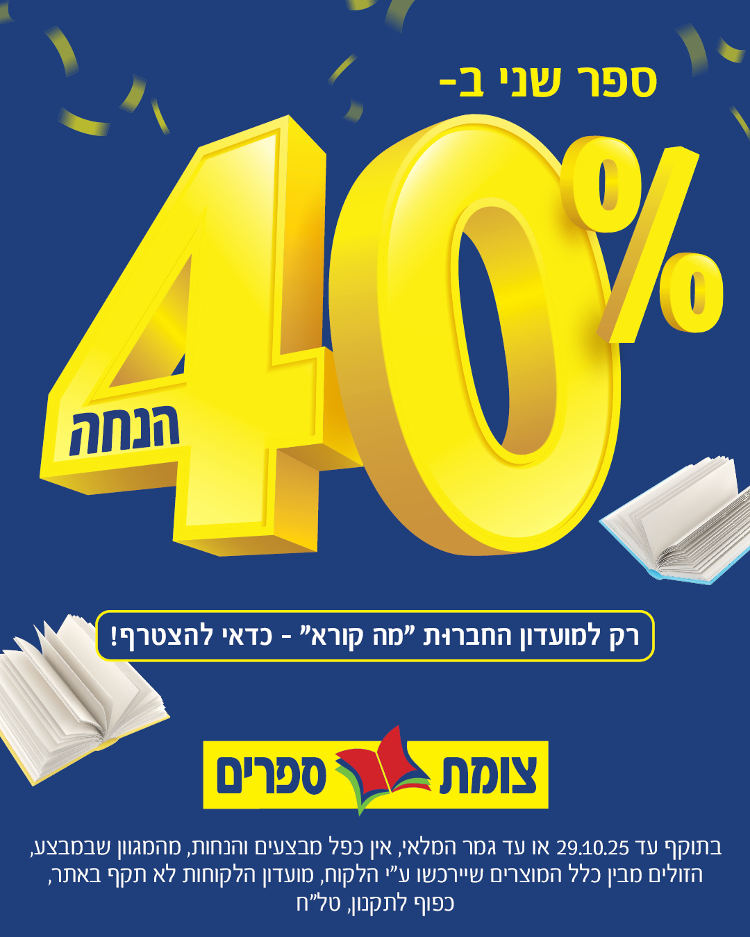יום ו' / ערבי חג: – 9:00-14:00 (שעון חורף)